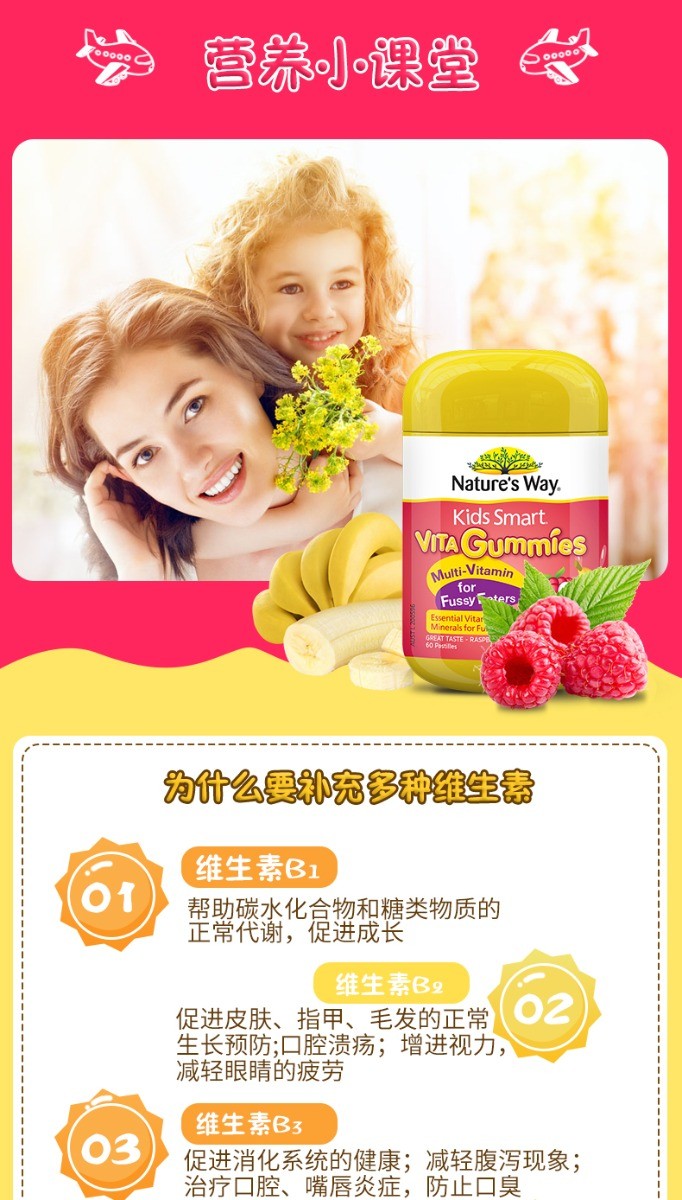 Nature’s way挑食专配,复合维他命软糖,改善挑食,偏食/莓子香蕉口味 60粒~